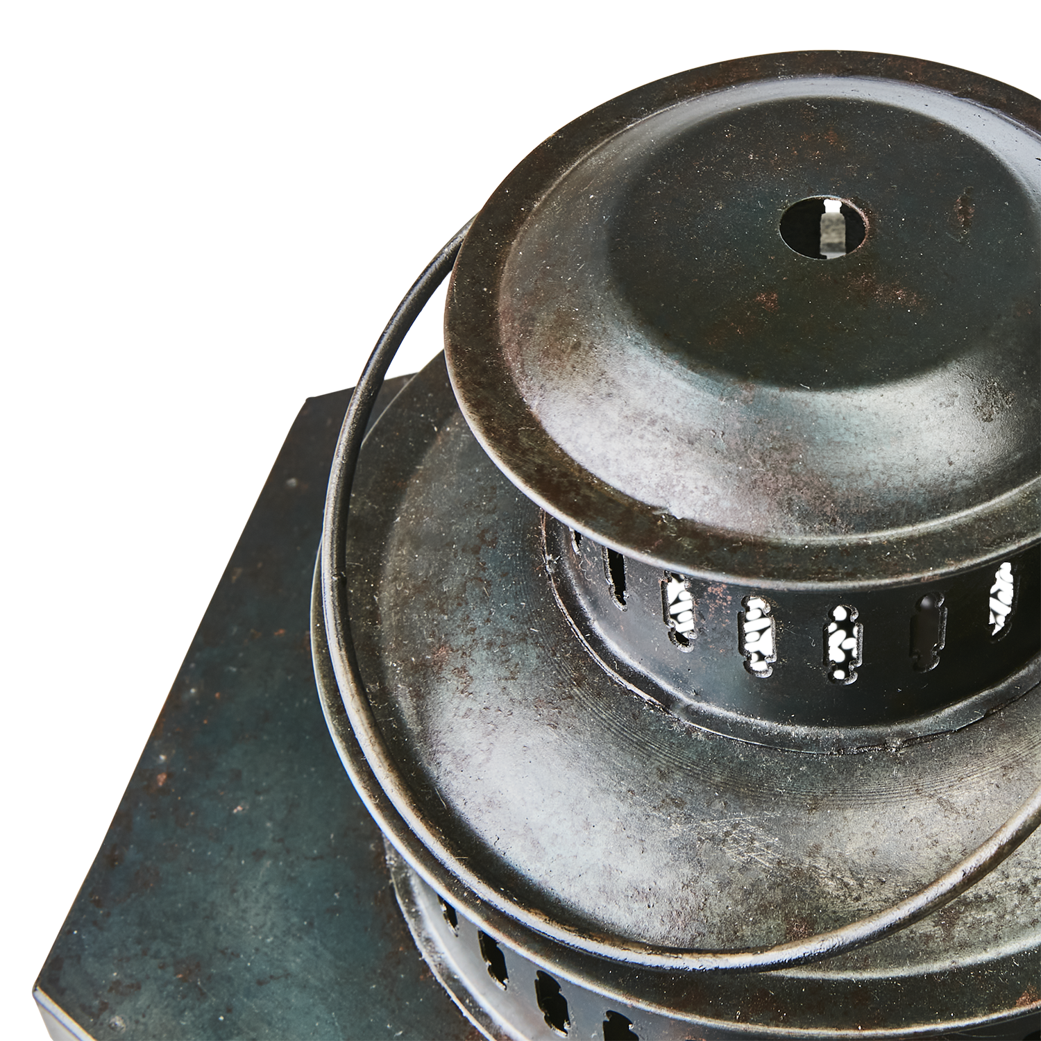 Denna produkt är tillverkad av järn. Den har en svart/brun färg. Kommer att fortsätta patineras om den utsätts för fukt. Måtten är diameter 25 cm, höjd 33/40. Produkten väger 1.05 kg.