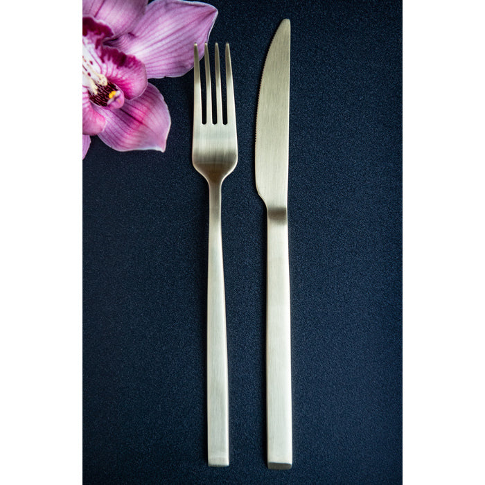 PURE CHAMPAGNE DINNER kommer som ett glamoröst “special edition” 24-delars gåvoset bestående av sex knivar (242 mm), sex gafflar (222 mm), sex skedar (226 mm) och sex teskedar (148 mm) i en exklusiv matt champagnefärgad ytbehandling.