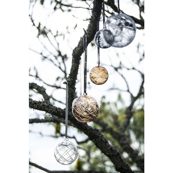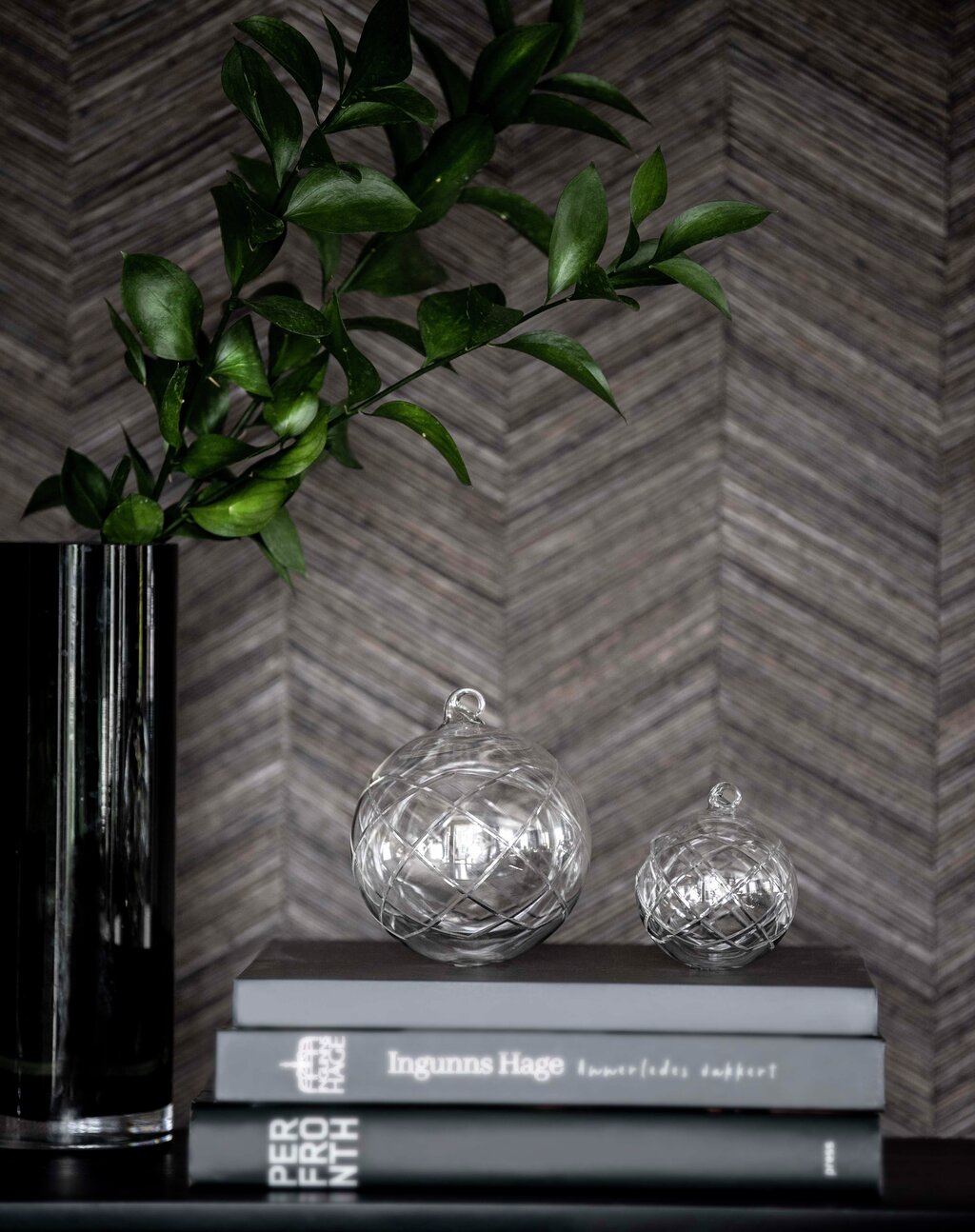LUX-dekorkulor är munblåsta i gnistrande klart, topasgyllene eller kolgrått glas med handslipad dekor. De finns i två storlekar – 8 cm och 12 cm – och levereras färdiga för upphängning med ett vackert sidenband. Alla kulor bär Halvor Bakkes välkända signatur som en garanti för varaktigt värde. Här flödar känslan av ren lyx för eleganta och stilfulla hem.