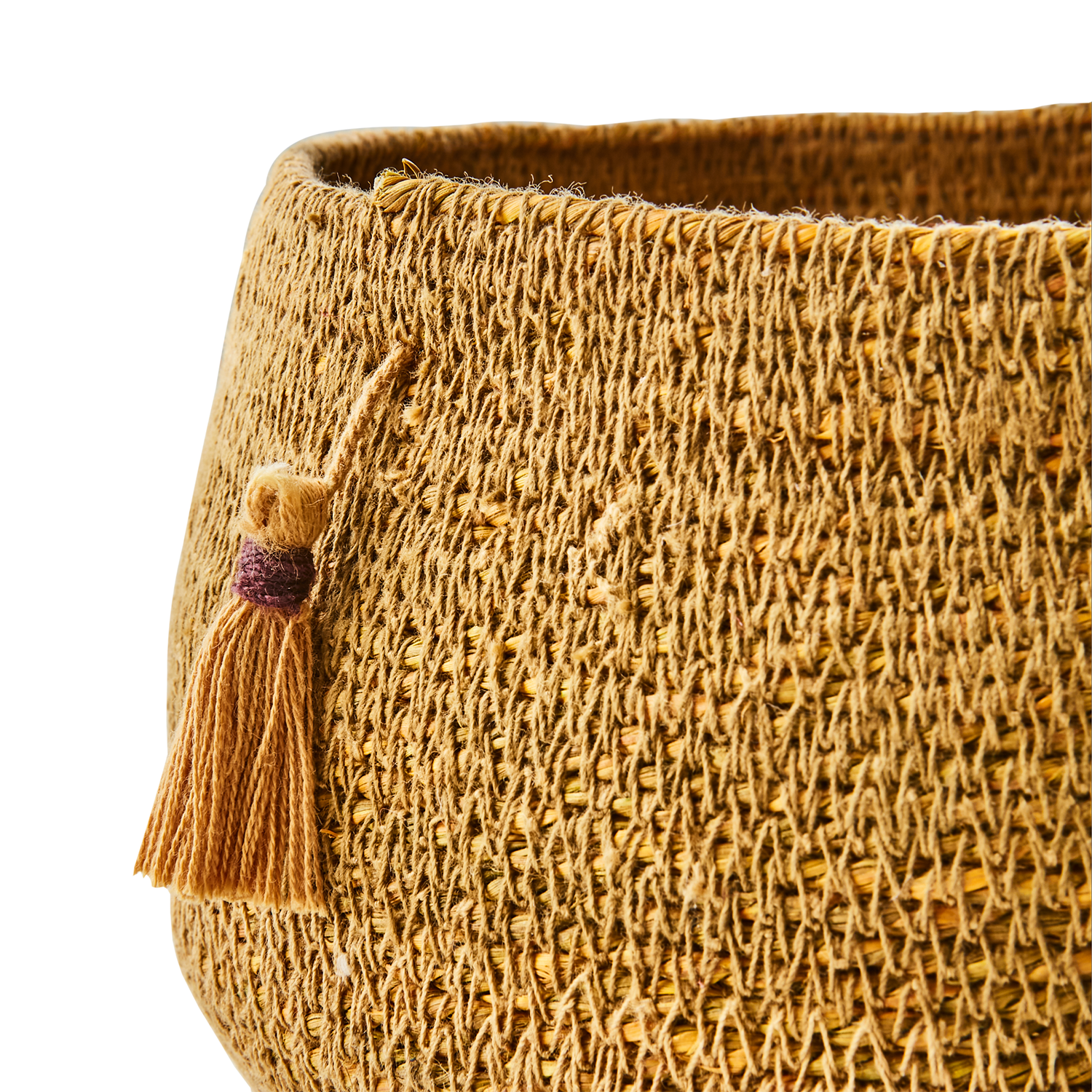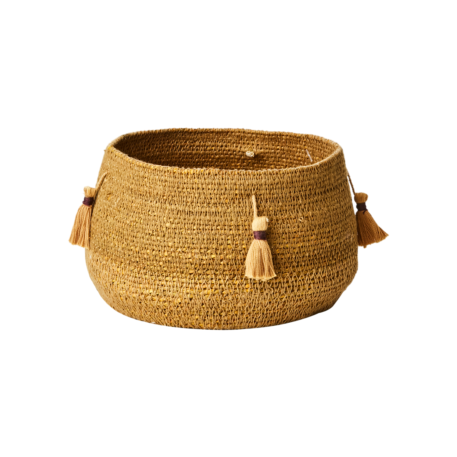 Denna produkt är tillverkad av sjögräs. Den har en senapsgul färg. Måtten är diameter 18/15, höjd 10 cm. Produkten väger 0.17 kg.