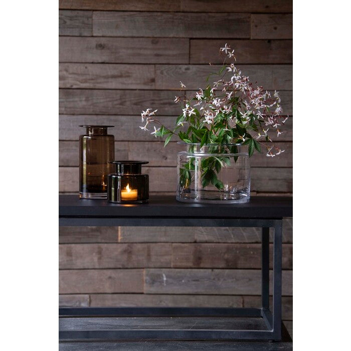 Old Farm Collection är munblåst och handgjord och finns i klart glas samt i färgerna topas och kolgrå, i storlekarna 13 cm, 20 cm och 25 cm.