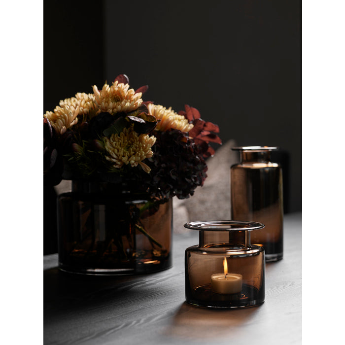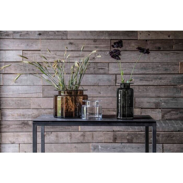 Old Farm Collection är munblåst och handgjord och finns i klart glas samt i färgerna topas och kolgrå, i storlekarna 13 cm, 20 cm och 25 cm.