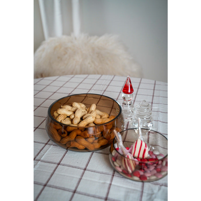 ROCKS-skålarna finns i tre storlekar: liten Ø13,5/H6 cm, medium Ø20/H9 cm och stor Ø26/H11,5 cm, i färgerna kolgrå och topas. ROCKS minivas är 8,5 cm hög och kommer också i kolgrått och topas. Alla är munblåsta och handgjorda av yrkesstolta glasblåsare. Varje exemplar är unikt och äkta – ingen är exakt lik den andra.