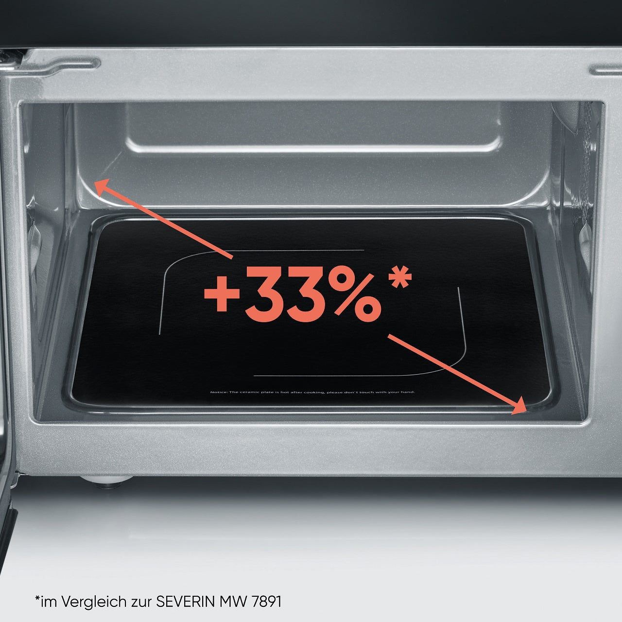 En innovativ funktion hos denna mikro är den keramiska bottenplattan som ersätter den traditionella roterande tallriken. Genom att fördela värmen jämnt möjliggör den keramiska plattan att du kan använda fyrkantiga formar utan problem och uppnå perfekta resultat varje gång. Dessutom ger den keramiska bottenplattan en imponerande ökning på 33% i kapacitet, vilket ger dig mer utrymme att laga mat.