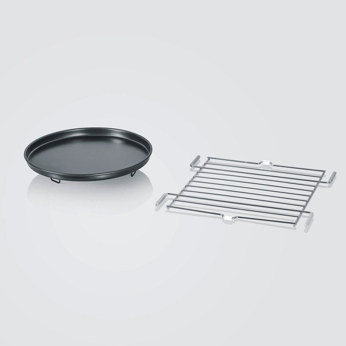 Dessutom är mikron utrustad med en varmluftsfunktion som når upp till 230°C, vilket förvandlar den till en fullfjädrad ugn. Med denna funktion kan du enkelt laga mat eller baka i mikron och spara energi då den snabbt når önskad temperatur. Det medföljande gallret ger dig möjlighet att laga mat på två olika nivåer i mikrovågsugnen, vilket ökar dess mångsidighet. För att uppnå den perfekta knapriga ytan är mikron även utrustad med en effektiv grilleffekt.