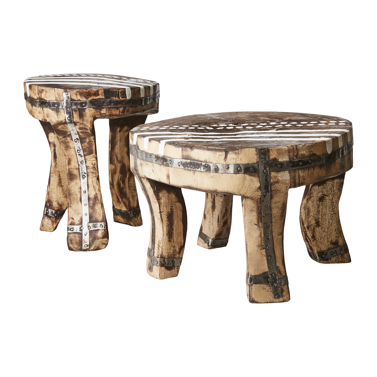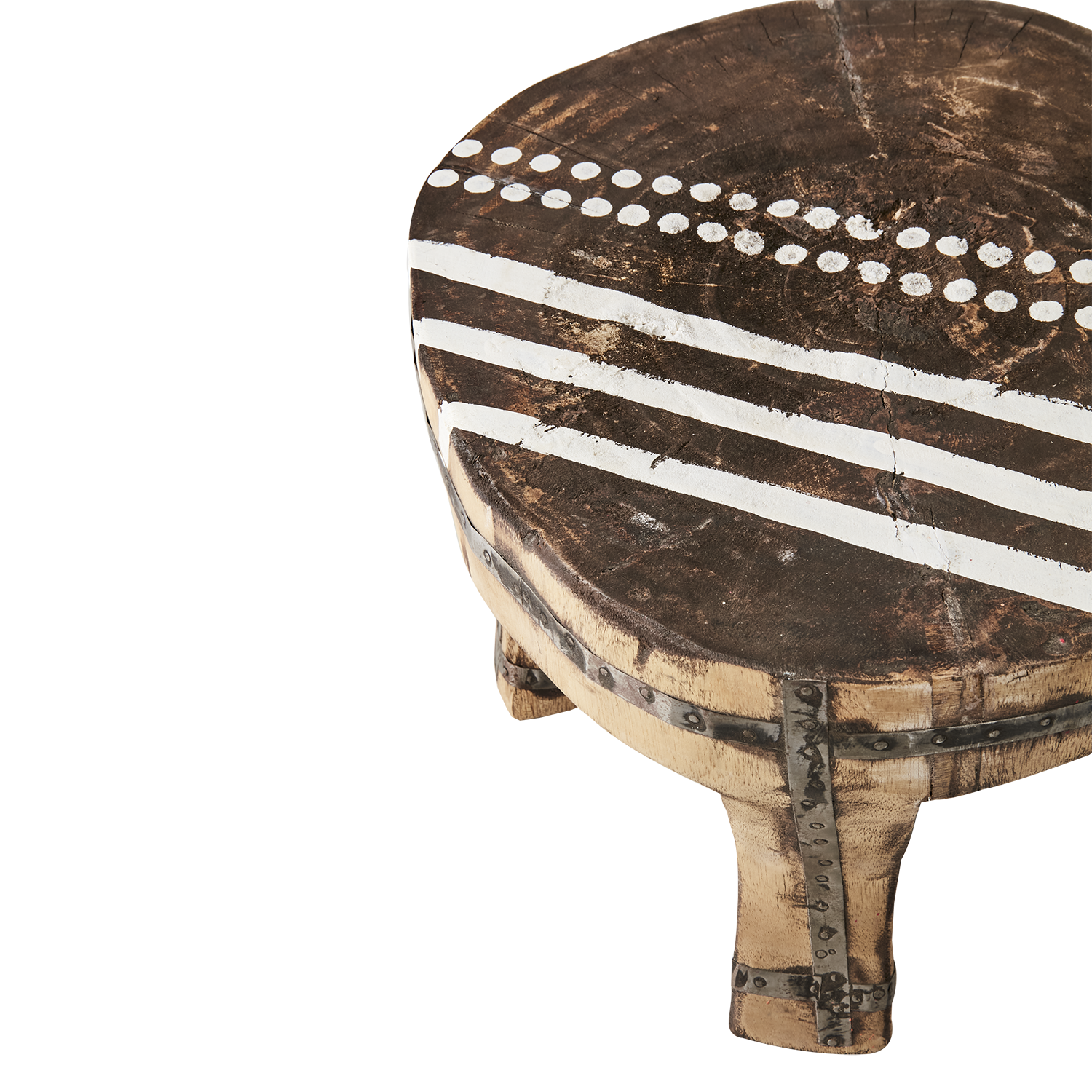 Denna produkt är tillverkad av trä, järn. Den har en brun färg. Gammalt original med handmålad dekor. Måtten är specialmått ~Ø36xH23. Produkten väger 3.35 kg.