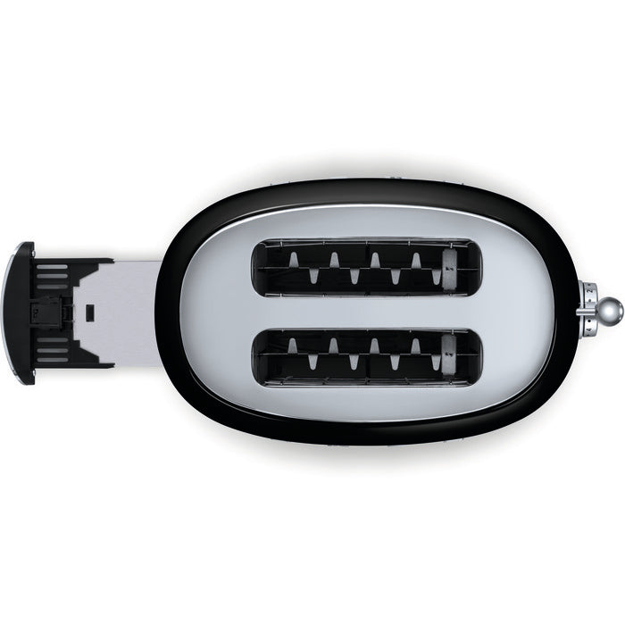 Brödrost från Smeg i 50-tals Retro Style för 2 skivor. Lackerat stål med kromade, belysta knappar. Extra breda (36 mm) fack. 6 olika rostningsnivåer. Upptiningsfunktion. Uppvärmningsfunktion. Bagel-program som rostar endast ena sidan. Separat stoppknapp för att avbryta programmet. Uttagbar smulbricka. Sladdvinda under brödrosten. Gummifötter för stabilitet. Total effekt: 950 W.