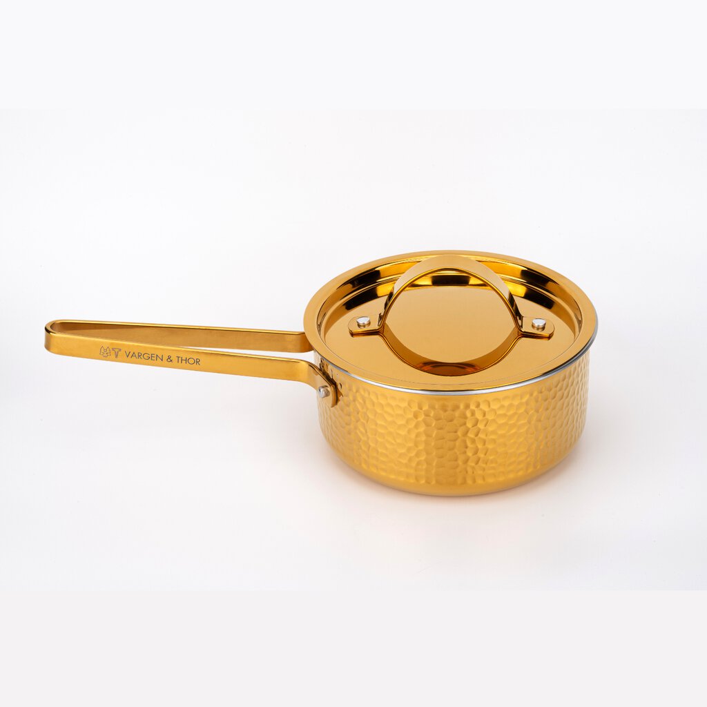 Den har Vargen & Thors ikoniska hamrade utsida i massivt stål, kombinerad med en aluminiumkärna för optimal värmefördelning. Matchar perfekt med övriga modeller i BRASSA-serienModell LB och MEYA.