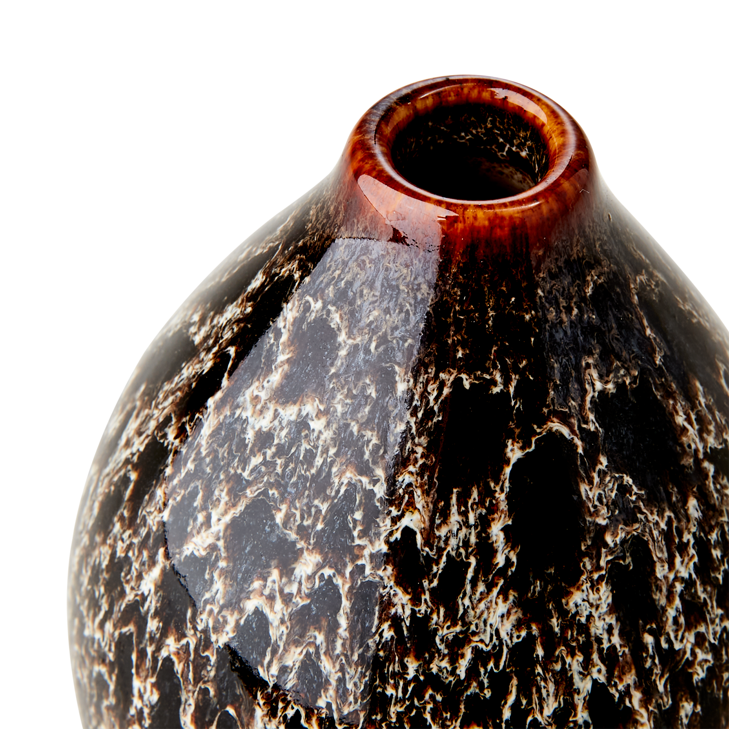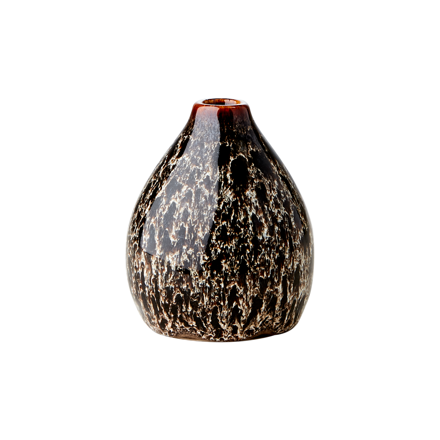 Denna produkt är tillverkad av stengods. Den har en mörkbrun färg. Endast för dekoration. LAVA produkter med samma färgnummer kommer att levereras i en varierad färgton och mönster. Detta beror på den naturliga reaktion som sker vid glasyrbränningen. Variationen är en del av produktfamiljens charm. Används endast för torkade eller plastblommor. Måtten är diameter 8 cm, höjd 10 cm. Produkten väger 0.2 kg.