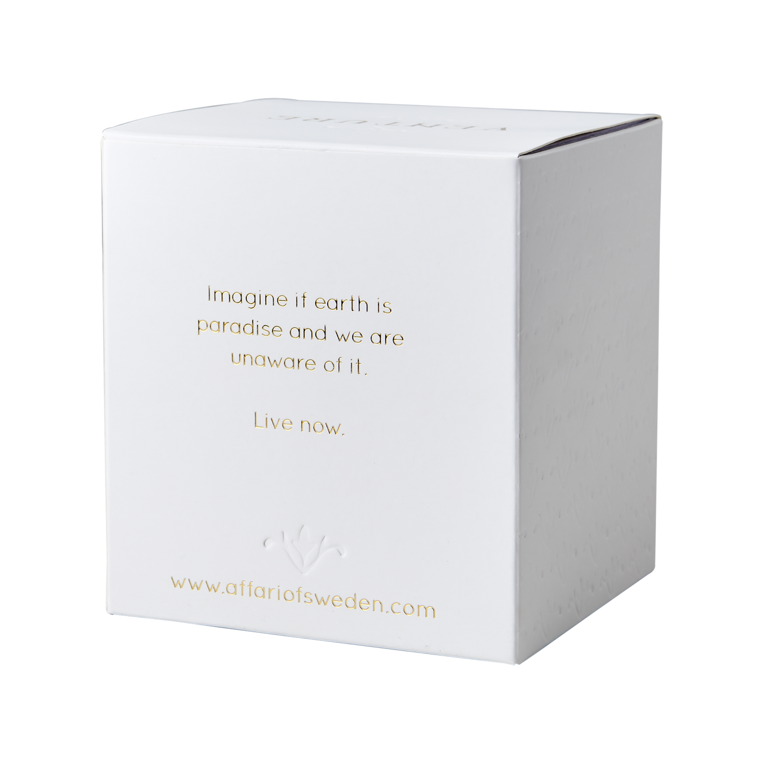 Denna produkt är tillverkad av sojavax, glas. Den har en vit färg. Doften är rosemary & white ginger. Ljuset har en uppskattad brinntid på cirka 24 h. Syntetiska dofter. Måtten är diameter 10 cm, höjd 11 cm. Produkten väger 0.75 kg.
